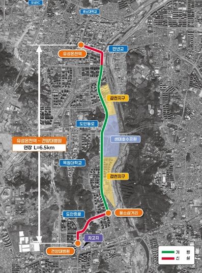 핵심사업은 ▲정거장 신설 및 개량 ▲전용차로 신설(유성온천역~만년교, 용소삼거리~건양대병원)이며 9월 준공 예정이다.