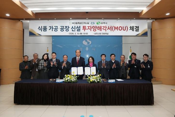뉴한국방송뉴스통신사 신유철기자 기자 | 주식회사 더동쪽바다가는길과 상주시는 2026년 3월 16일 오전 10시, 상주시청 대회의실에서 상주 일반산업단지 내 수산물 가공식품 제조공장 신설을 내용으로 하는 투자양해각서를 체결했다.