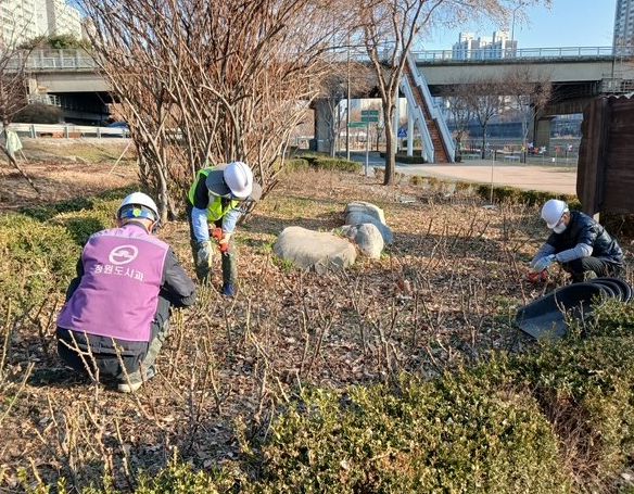 뉴한국방송뉴스통신사 신유철기자 기자 | 서울 동대문구가 중랑천 장미 식재지의 개화 품질 향상을 위해 자체 인력을 활용한 장미 관리에 나섰다.