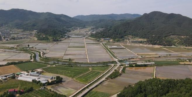 구미시는 무을면 웅곡리 일원에 2023년부터 총사업비 16억5천만원을 투입해 ‘경북형 혁신 농업타운’ 조성사업을 추진하고 있다. 참여농가 61호, 54ha 규모다. 개별 농가 중심의 관행 농업에서 벗어나 마을 법인이 위탁 영농을 수행하고 수익을 배분하는 공동영농 모델을 도입했다.