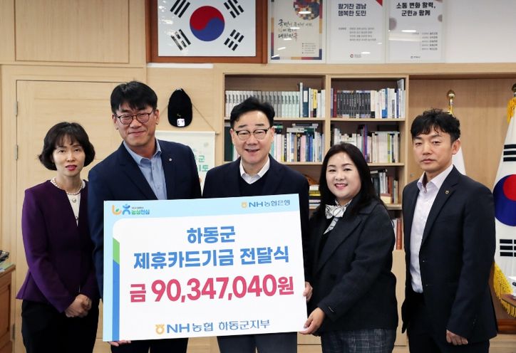 뉴한국방송뉴스통신사 신유철기자 기자 | 하동군은 지난 17일 NH농협은행 하동군지부(지부장 장주익)로부터 제휴카드 사용에 따른 적립 기금 9035만 원을 전달받았다고 밝혔다.