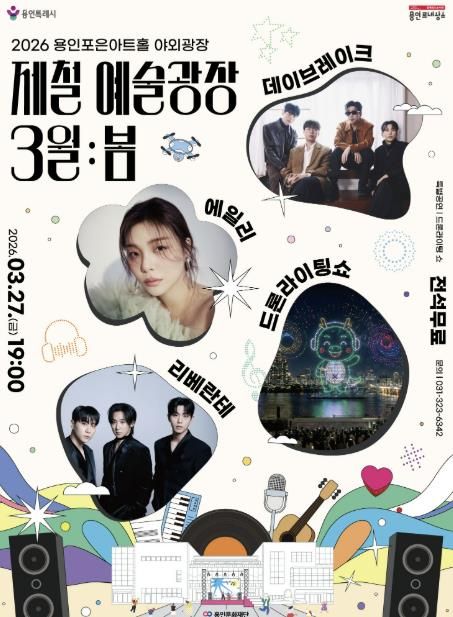 ‘제철 예술광장 3월 : 봄’콘서트에서는 메인 공연에 앞서 용인문화재단 ‘아임버스커’소속 아티스트 ‘세일러스’가 사전 공연을 진행한다. 이어 메인 무대에서는 살랑이는 봄바람과 가장 잘 어울리는 밴드 ‘데이브레이크’, 대한민국을 대표하는 파워 보컬 ‘에일리’, 팬텀싱어 4 우승팀인 크로스오버 그룹 ‘리베란테’가 광장을 가득 채울 폭발적인 라이브와 낭만적인 하모니를 선사할 예정이다.