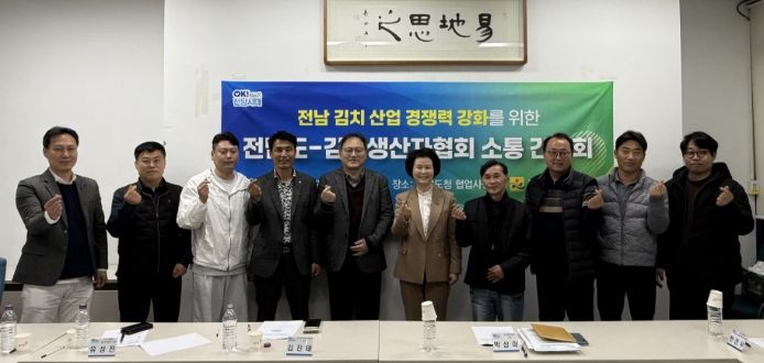 간담회에는 전남도 농식품유통과장, 전남김치생산자협회 김진태 회장과 회원사 관계자 10여 명이 참석했다. 이들은 행정통합에 따른 김치 산업 지원체계 일원화에 대비해 전남 김치만의 우수한 원재료와 전통을 계속 유지할 구체적 협력 방안을 논의했다.