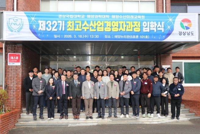 뉴한국방송뉴스통신사 신유철기자 기자 | 경상남도는 18일 경상국립대학교 해양과학대학 해양누리관에서 45명의 교육생이 참석한 가운데 제32기 최고수산업경영자과정 입학식을 개최했다고 밝혔다.