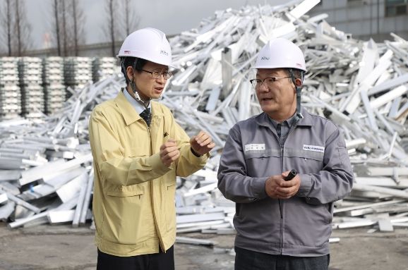 뉴한국방송뉴스통신사 신유철기자 기자 | 조달청은 18일 중동 상황 발생 이후 원자재 가격 변동성이 높아지는 가운데, 알루미늄 제조업체인 하이호경금속㈜(대표 서일수, 전북 군산시 소재)을 방문하여 알루미늄 수급 현황을 점검하고 현장의 목소리를 청취했다.