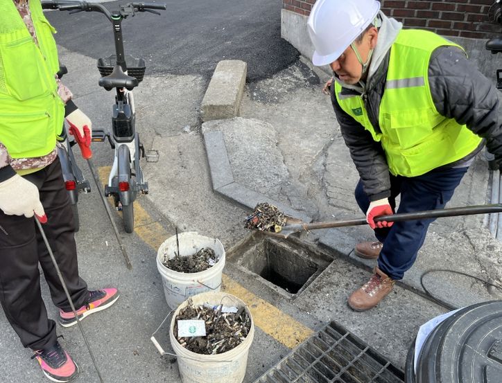 성북구는 유동 인구와 무단투기가 많은 ‘성신여대 하나로 거리’ 일대를 시작으로 정비를 진행했으며, 빗물받이 내부에 쌓여 배수를 방해하던 낙엽과 담배꽁초, 토사 등 이물질을 집중적으로 제거했다.