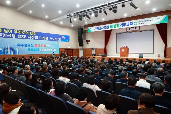 뉴한국방송뉴스통신사 신유철기자 기자 | 사천시는 19일 사천시청 대강당에서 지역의 최일선에서 활동하는 이·통장의 역할과 직무역량 강화를 위해 관내 이·통장 403명을 대상으로 직무교육을 실시했다.