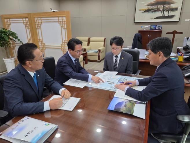 뉴한국방송뉴스통신사 김성의 기자 | 고창군수가 지난 19일 오후 국토교통부 제2차관을 만나 서해안 철도를 비롯한 지역 핵심 사회간접자본(SOC) 사업의 국가계획 반영을 강력히 건의했다.