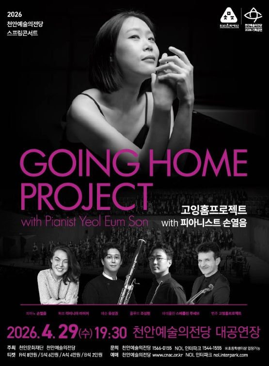 뉴한국방송뉴스통신사 신태공 기자 | 천안문화재단은 내달 29일 천안예술의전당 대공연장에서 스프링콘서트 ‘고잉홈프로젝트 with 피아니스트 손열음’을 개최한다고 23일 밝혔다.