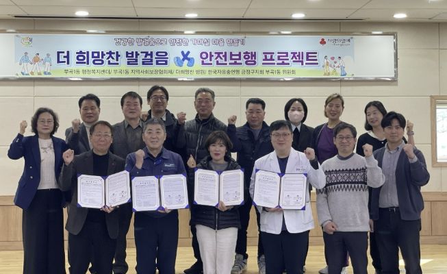뉴한국방송뉴스통신사 신유철기자 기자 | 부산 금정구 부곡1동은 지난 19일, 어르신의 안전한 보행 환경 조성과 낙상 예방을 위한 '더 희망찬 발걸음, 안전보행 프로젝트' 업무협약(MOU)을 체결했다고 밝혔다.