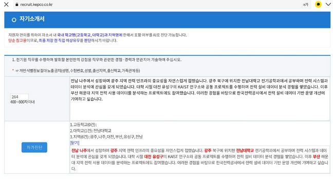 뉴한국방송뉴스통신사 신다은기자 기자 | 한국전력이 채용 지원자의 편의를 높이고 공정한 채용 환경을 조성하기 위해, 자기소개서 AI 자가 진단과 네이버 인증 기반 자격증 자동 반영 서비스를 채용 시스템에 전격 도입한다.