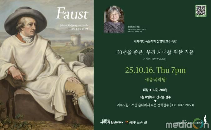 뉴한국방송뉴스통신사 신유철기자 기자 | 여주시는 오는 10월 16일 오후 7시 세종국악당에서 세계적인 독문학자 전영애 서울대학교 명예교수를 초청하여 괴테의 '파우스트' 특별강연을 운영한다.