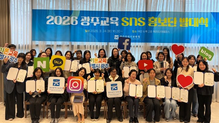 뉴한국방송뉴스통신사 김성의 기자 | 광주시교육청은 24일 남구 어반브룩에서 학부모 29명, 교직원 6명 등 35명으로 구성된 ‘2026 광주교육 SNS 홍보단 출범식’을 갖고 본격 운영에 들어갔다.