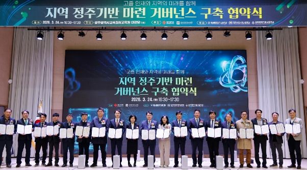 뉴한국방송뉴스통신사 김성의 기자 | 광주시교육청과 광주시는 24일 광주AI교육원 대강당에서 이정선 광주시교육감, 김기숙 광주시 교육청년국장 등이 참석한 가운데 ‘고졸 인재와 지역의 미래를 함께, 지역 정주기반 마련 거버넌스 구축 협약식’을 개최했다.