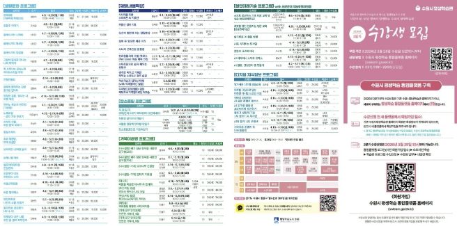 뉴한국방송뉴스통신사 신유철기자 기자 | 수원특례시는 3월 25일 오전 10시부터 수원시 평생학습관 2026년 2분기 프로그램 수강생을 모집한다.