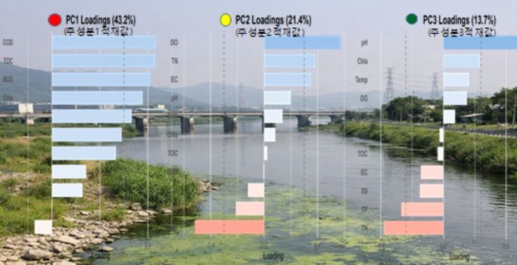 분석 결과 유기물(COD, TOC)과 총인(T-P) 등이 전체 수질 변동의 43.2%를 설명하는 주요 인자로 확인됐다. 특히 유기물 지표와 클로로필-a 간 높은 상관성이 나타나, 유기물과 조류 발생 간 연관성이 높은 것으로 분석됐다.