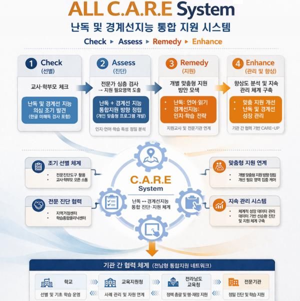 뉴한국방송뉴스통신사 김성의 기자 | 전라남도교육청은 경계선 지능 학생과 난독 학생의 맞춤 지원을 위한 ‘전남형 기초학력 보장 체계’를 한층 강화한다.