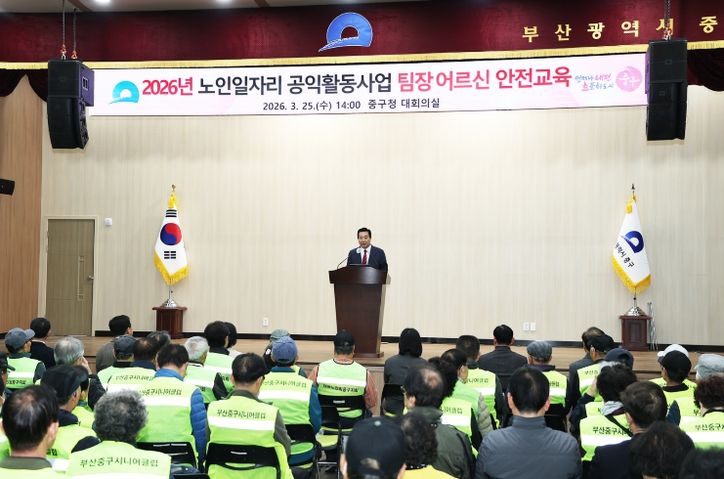 뉴한국방송뉴스통신사 신유철기자 기자 | 부산 중구는 25일 중구청 대회의실에서 중구 노인일자리 공익활동사업에 참여 중인 팀장 어르신 111명을 대상으로 안전교육을 실시했다.