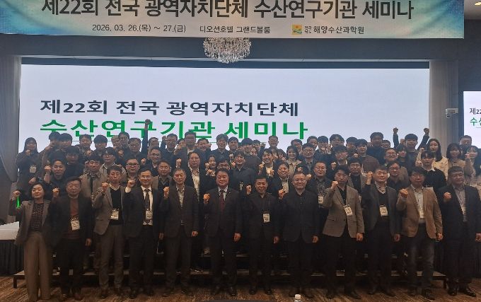 뉴한국방송뉴스통신사 신다은기자 기자 | 전라남도해양수산과학원은 27일까지 이틀간 여수 디오션호텔에서 ‘제22회 전국 광역자치단체 수산연구기관 세미나’를 개최, 전국 해양수산 연구기관 간 협력과 미래 수산업 대응 전략 논의를 주도했다.