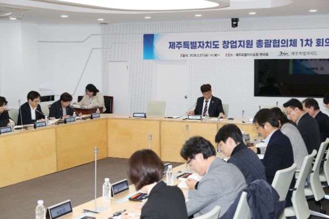 제주도는 27일 오후 도청 한라홀에서 ‘2026년 제주특별자치도 창업지원 총괄협의체’ 1차 회의를 열고, 기관별 창업지원 사업의 추진 방향과 역할 분담, 기관 간 협력 방안을 집중 논의했다.