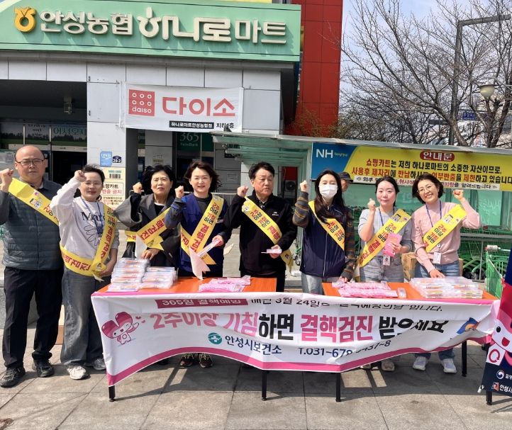 뉴한국방송뉴스통신사 신유철기자 기자 | 안성시보건소는 ‘제16회 결핵 예방의 날(3월 24일)’을 맞아 지난 3월 25일 관내 유동 인구가 많은 안성농협 하나로마트 정문 및 안성시장 인근에서 ‘결핵 예방 캠페인’을 실시했다고 밝혔다.
