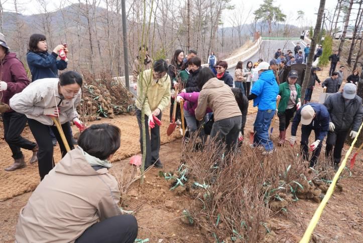 이날 참가자들은 총 1ha 규모 부지에 공조팝, 홍황철쭉, 청단풍을 식재했다.