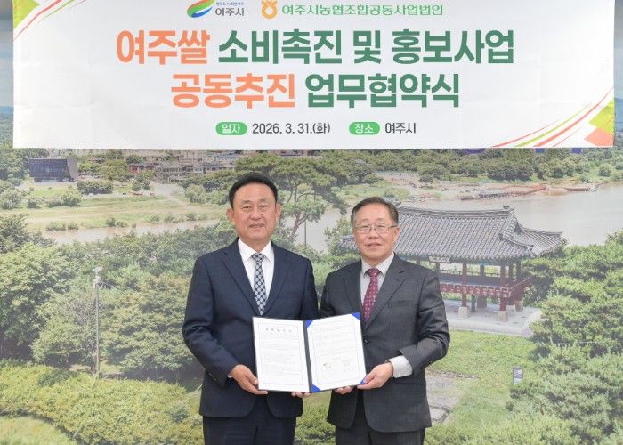 뉴한국방송뉴스통신사 신유철기자 기자 | 여주시는 2026년 3월 31일 여주시청 시장실에서 ‘여주쌀 소비 촉진 및 홍보사업 공동추진 업무협약식’을 개최했다. 이번 협약은 여주시와 여주시농협조합공동사업법인(대표 전규제)이 협력하여 여주쌀의 소비 확대와 브랜드 가치 제고를 위해 추진됐다.