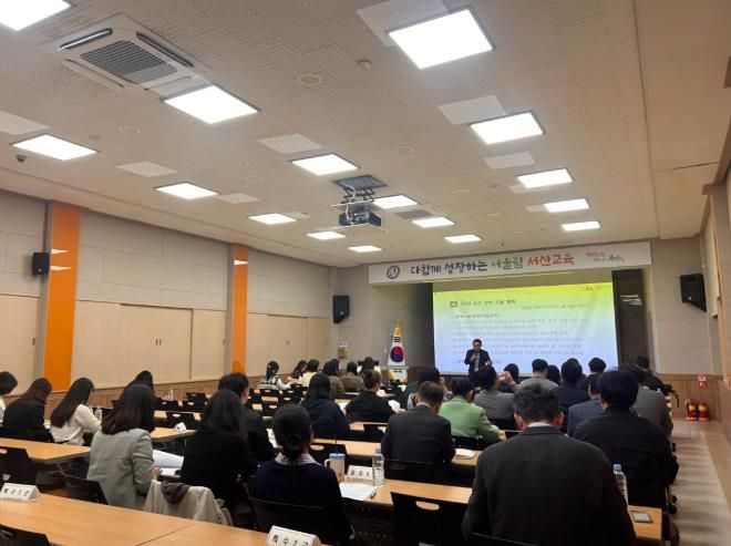 이어 “서산의 모든 선생님이 수업 전문가가 되는 그날까지 현장의 목소리를 최우선으로 경청하며, 단순한 지식 전달을 넘어 수업 이후의 세밀한 평가와 환류, 그리고 성장의 기록에 이르기까지 교육활동 전반을 촘촘하게 지원하겠다. 앞으로도 교사의 전문성 강화를 최우선 과제로 삼아 모든 역량을 집중하여 ‘배움이 즐거운 서산교육’을 실현해 나가겠다”고 강조했다.