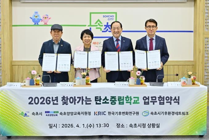 속초시 관계자는 “학생들이 오기만 기다리는 것이 아니라 속초시가 먼저 교실로 찾아가는 적극적인 사업”이라며 “이번 협약을 계기로 지역과 학교, 전문 기관이 함께하는 실질적인 탄소중립 교육을 확대해 나가겠다”고 말했다.