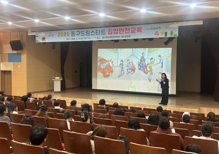 뉴한국방송뉴스통신사 신유철기자 기자 | 부산 동구는 지난 31일 동구국민체육문예센터에서 드림스타트 아동 및 가족 100여 명이 참석한 가운데, 생활 속 안전한 일상을 지키고 사고를 예방하기 위한 ‘2026년 드림스타트 안전 집합교육’을 실시했다고 밝혔다.