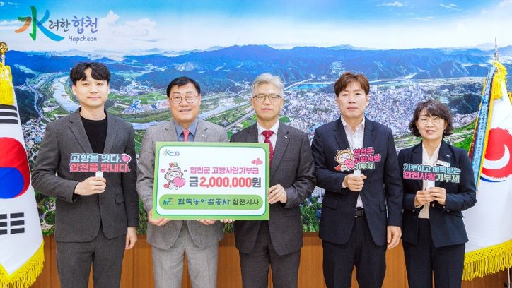 김윤철 합천군수는 “농어촌공사 합천지사의 꾸준한 참여와 나눔 실천에 깊이 감사드린다”며 “고향사랑기부제가 지역 발전의 든든한 기반이 될 수 있도록 더욱 내실 있게 운영해 나가겠다”고 밝혔다.