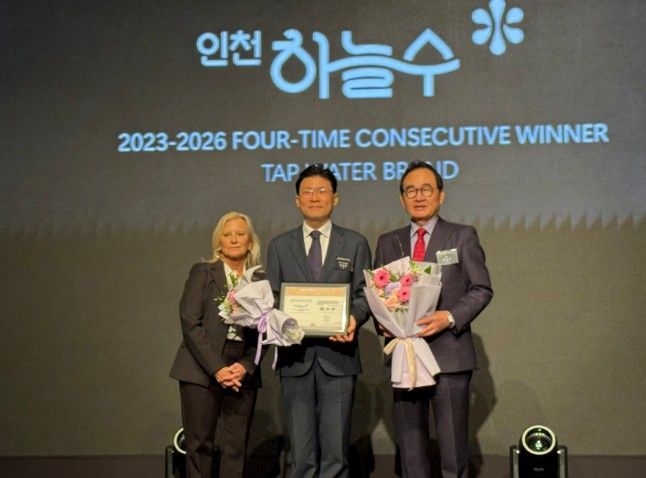 뉴한국방송뉴스통신사 신유철기자 기자 | 인천광역시 상수도사업본부는 수돗물 브랜드 ‘인천하늘수’가 ‘2026 뉴욕페스티벌 대한민국-국가브랜드대상(The 2026 NYF K-NBA)’ 수돗물 부문에서 4년 연속 대상을 받았다고 밝혔다.