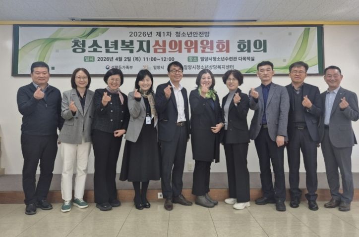 이번 회의에는 위원장인 밀양시 문화복지국장을 비롯해 위원 10명이 참석했다. 회의에서는 2025년도 청소년안전망 운영 실적과 2026년도 추진 방향을 보고받고, 특별지원 대상 청소년 선정 보고와 위기 청소년 맞춤형 지원 강화를 위한 연계 활성화 방안을 논의했다.