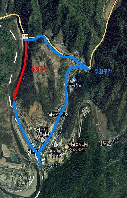 뉴한국방송뉴스통신사 신유철기자 기자 | 봉화군은 석포면 석포리 일원 불미고개 입구부터 하수처리장구간 (군도20호)을 오는 4월 8일부터 8월 15일까지(약 130일간) 낙석방지망 설치 등 정비사업을 위해 전면 통제 할예정이다.