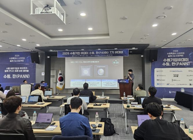 뉴한국방송뉴스통신사 신유철기자 기자 | 수원특례시가 2일 수원벤처밸리2 기업지원센터 대회의실에서 2026 수원기업 아이알(IR)데이 수원.판(PANN) 7기를 개최했다.