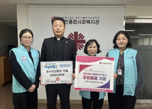 뉴한국방송뉴스통신사 권영분기자 기자 | 국민건강보험공단 제천단양지사는 지난 4월 1일, 어린이날을 앞두고 제천시 어린이들을 지원하기 위해 제천종합사회복지관에서 주관하는 어린이날 선물보내기 행사 ‘5월의 산타’ 에 온누리상품권을 500,000원 기부했다고 밝혔다.