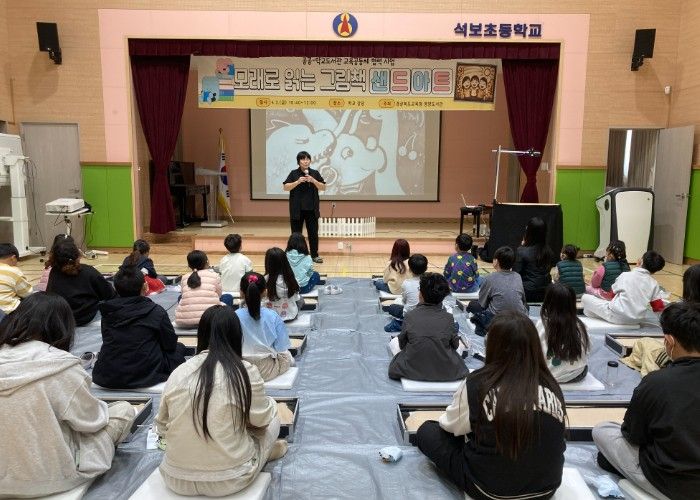 공연은 그림책 '무지개 물고기'와 '북극곰에게 냉장고를 보내야겠어'의 이야기를 빛과 모래로 표현했다. 모래 그림과 음악, 이야기가 어우러지며 학생들은 그림책 속 장면을 생생하게 체험했다.