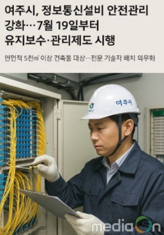 뉴한국방송뉴스통신사 신유철기자 기자 | 여주시는 지난 7월 19일부터 ‘정보통신설비 유지보수 ‧ 관리제도’를 본격 시행한다고 8일 밝혔다. 이번 제도는 일정 규모 이상의 건축물에 대해 정보통신설비를 체계적으로 관리하고, 화재나 통신 장애 등 안전사고를 예방하기 위해 마련됐다.