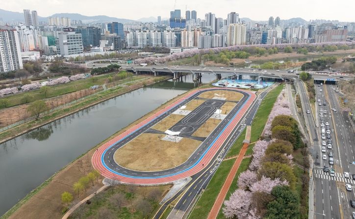 새롭게 조성된 ‘멀티스포츠존’은 총면적 14,600㎡ 규모로, 효율적인 공간 배치를 통해 활용도를 극대화했다. 트랙 안쪽은 인라인 전용으로, 바깥쪽은 육상 전용 트랙으로 구분해 이용자 간 간섭을 줄이고 충돌 위험을 최소화했다. 특히 육상트랙에는 충격 흡수력이 뛰어난 탄성 포장재를 사용해 부상 위험을 낮추고 이용 피로도를 줄였다.