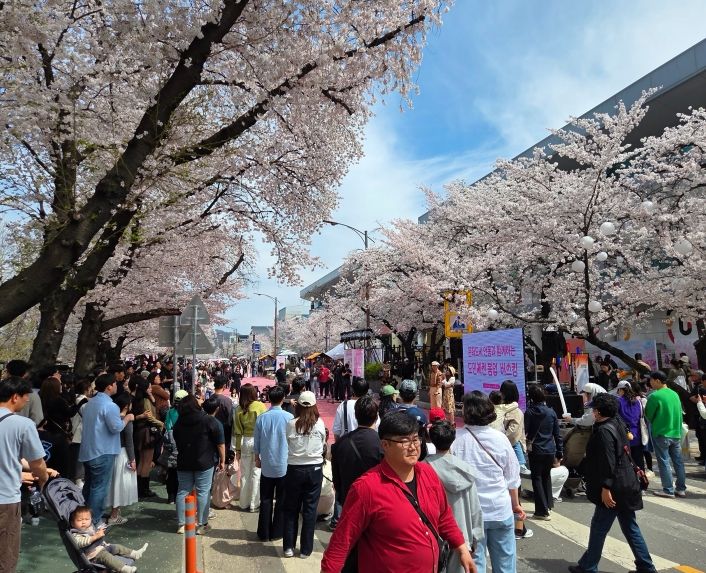 축제 기간 내내 만개한 벚꽃은 봄의 정취를 가득 담아내며 상춘객들의 발길을 사로잡았다. 특히 ‘벚꽃 따라 철길 여행’ 걷기행사를 비롯해 가족 단위 관람객과 어린이집, 학교 등 다양한 단체 방문객이 시간대별로 자연스럽게 유입되면서 축제장 곳곳은 활기로 가득 찼다. 예년과 달리 평일 낮 시간대에도 방문객이 크게 늘면서 식당가와 푸드트럭 등이 문전성시를 이뤘으며, 이는 지역 경제 활성화로 이어지는 선순환 구조를 만들었다.