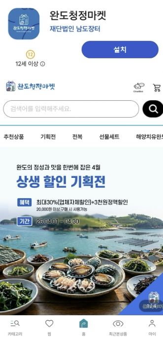 뉴한국방송뉴스통신사 신다은기자 기자 | 완도군은 4월 6일 특산품 온라인 쇼핑몰인 ‘완도 청정 마켓’의 앱을 출시했다.