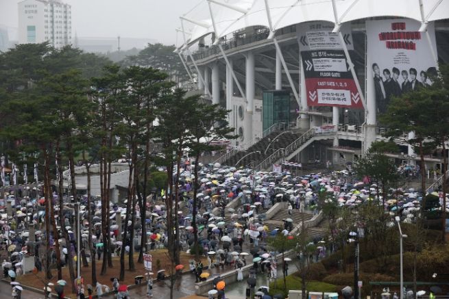 뉴한국방송뉴스통신사 신유철기자 기자 | ‘BTS 월드투어 아리랑 in 고양’이 열리는 고양종합운동장, 9일 비가 내리는 궂은 날씨에도 공연장과 인근 상가까지 BTS 콘서트를 즐기기 위해 방문한 국내외 관람객으로 가득찼다.