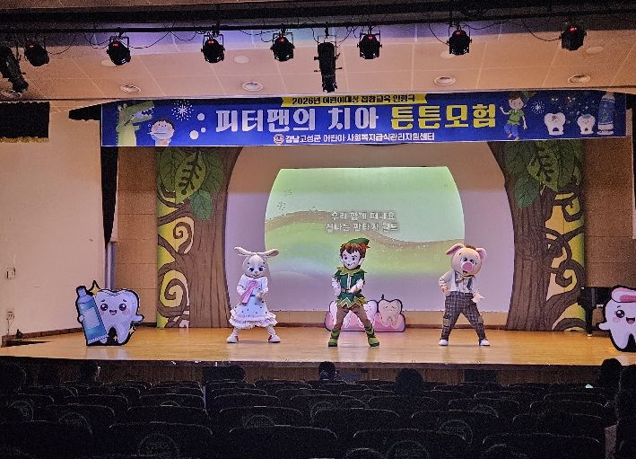 뉴한국방송뉴스통신사 신유철기자 기자 | 고성군어린이‧사회복지급식관리지원센터(센터장 김지상)는 4월 10일 고성군문화체육센터 2층 공연장에서 2회에 걸쳐 구강 건강 인형극 ‘피터팬의 치아 튼튼모험’을 선보였다. 이번 행사에는 센터에 등록된 어린이집 및 유치원생 300여 명이 참여했다.