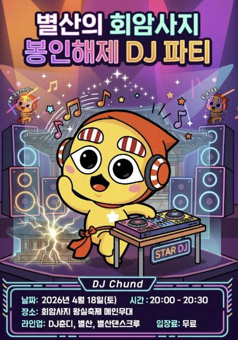 공연은 전문 DJ의 디제잉을 중심으로 진행되며, 양주시 SNS 캐릭터 ‘별산’이 무대에 함께 올라 관람객과 호흡하며 분위기를 돋운다. 무대는 음악과 영상 연출이 결합된 형태로, 디제잉과 현장 퍼포먼스를 통해 유적 공간의 정적인 분위기를 전환하는 공연으로 기획됐다.