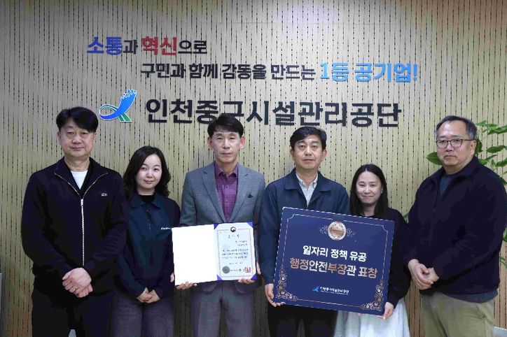 뉴한국방송뉴스통신사 신유철기자 기자 | 인천중구시설관리공단은 2025년 지방공공기관 일자리 정책 분야에서 행정안전부로부터 ‘일자리 정책 추진 유공’ 장관 표창을 받았다고 13일 밝혔다.
