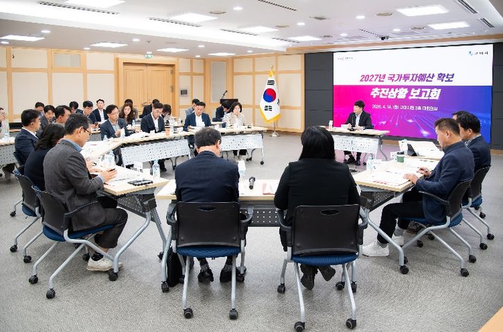뉴한국방송뉴스통신사 신유철기자 기자 | 구미시는 14일 시청 대회의실에서 정성현 시장 권한대행 주재로 실·국·소장과 부서장 등 50여 명이 참석한 가운데‘2027년 국가투자예산 확보 추진상황 보고회’를 열고, 국비 확보를 위한 전방위 대응체계를 강화했다.