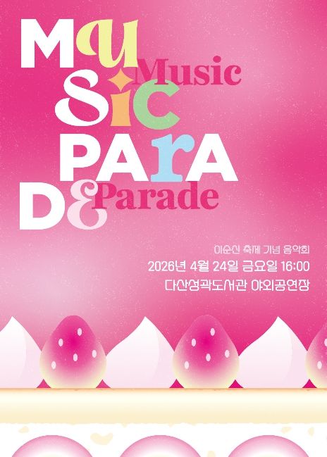 뉴한국방송뉴스통신사 신유철기자 기자 | 서울 중구문화재단은 이순신 축제를 기념하여 오는 4월 24일 오후 4시 다산성곽도서관 야외공연장에서 ‘뮤직 퍼레이드’를 개최한다.