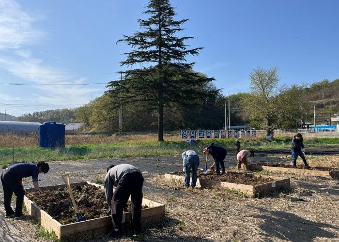 이번 활동은 (구)강구초등학교 직천분교장 부지 내 생태체험농장에서 진행됐으며, 직원들은 부서별로 배정된 플랜트를 중심으로 잡초를 제거하고 토양 상태를 점검하는 등 본격적인 농작물 재배 준비에 나섰다.