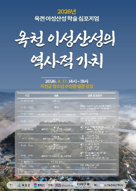 뉴한국방송뉴스통신사 권영분기자 기자 | 옥천군은 오는 17일 청소년수련관 별관 강당에서 ‘옥천 이성산성의 역사적 가치’를 주제로 학술대회를 개최한다고 밝혔다.