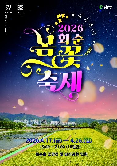 뉴한국방송뉴스통신사 신다은기자 기자 | 전라남도 화순군은 봄을 맞아 지역 대표 축제인 ‘2026 화순 봄꽃 축제’를 오는 4월 17일부터 26일까지 10일간 화순 꽃강길과 남산공원 일원에서 개최한다고 밝혔다.